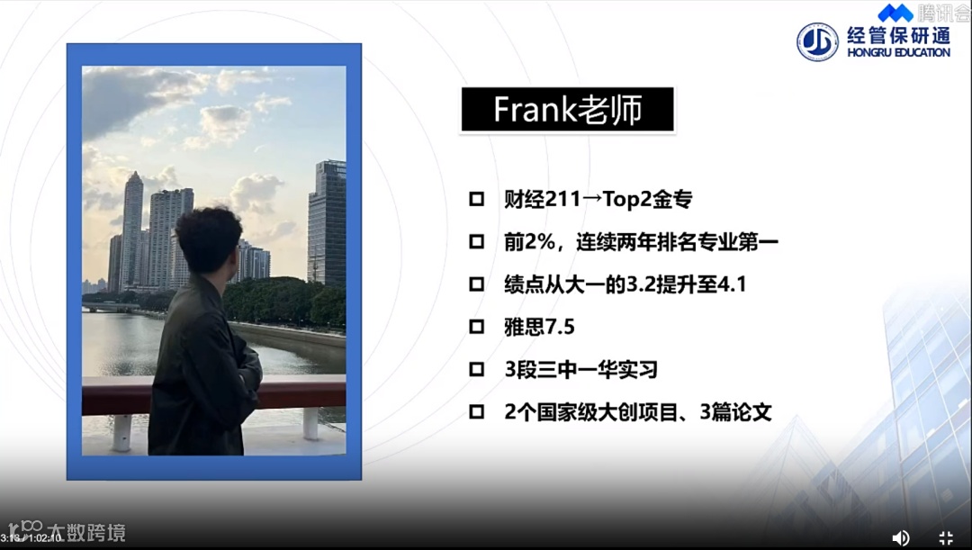 Frank学长,财经211,连续两年专业第一,绩点从大一的3.2-4.1,保送TOP2金融硕士