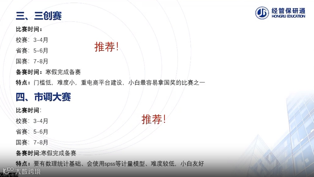 相比互联网+和挑战杯,三创赛则是更垂直于经管方向的商科竞赛!含金量较高,要求学生具备创新思路,认真打磨计划书,获奖的难度也相对比较低。