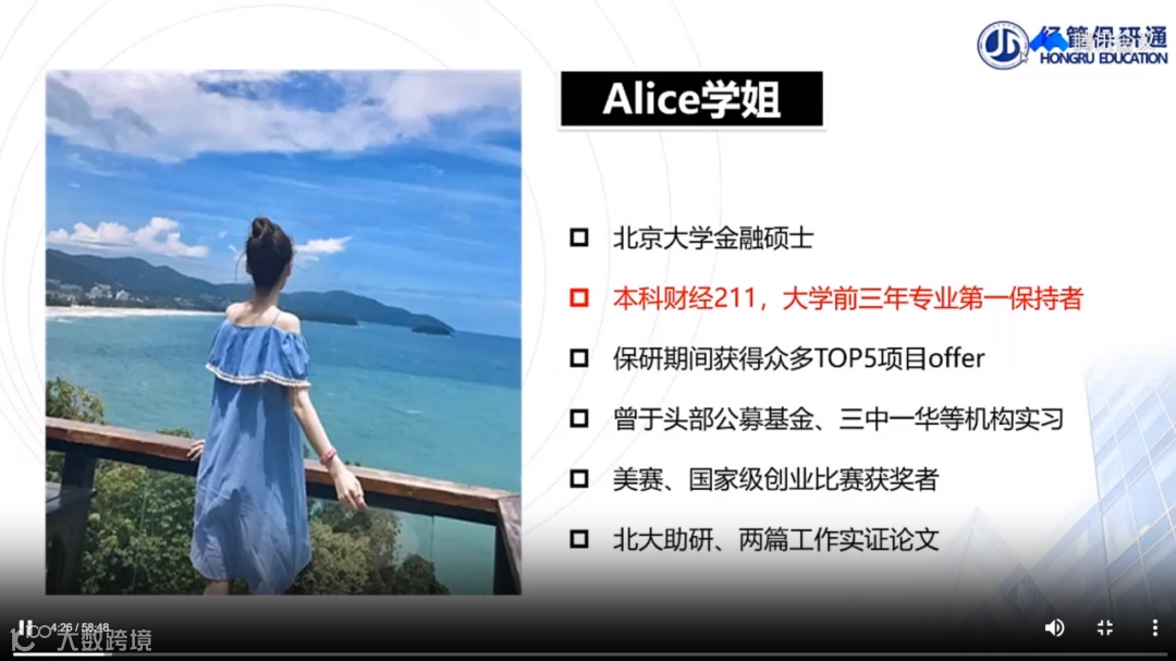 Alice学姐,财经211,大学前三年专业第一保持者,保送北大金融硕士