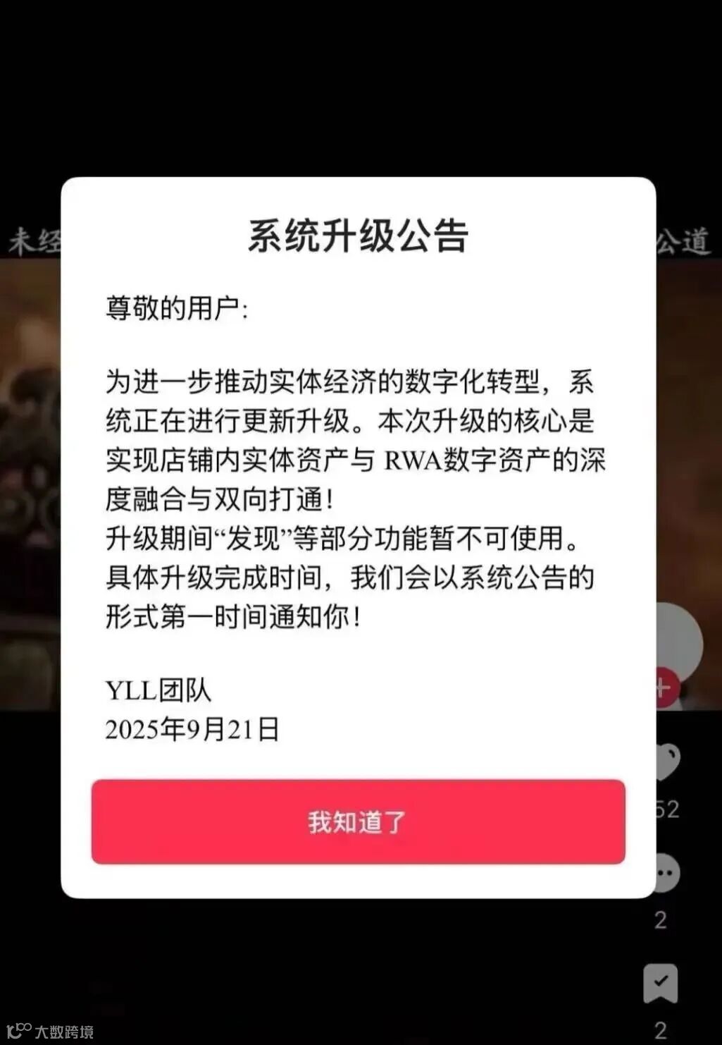 9月份,该平台又以“推进实体资产与RWA数字资产深度融合” 为借口,发公告说要系统升级,直接暂停了所有卖家的提现功能,把卖家的本金套牢在里面。