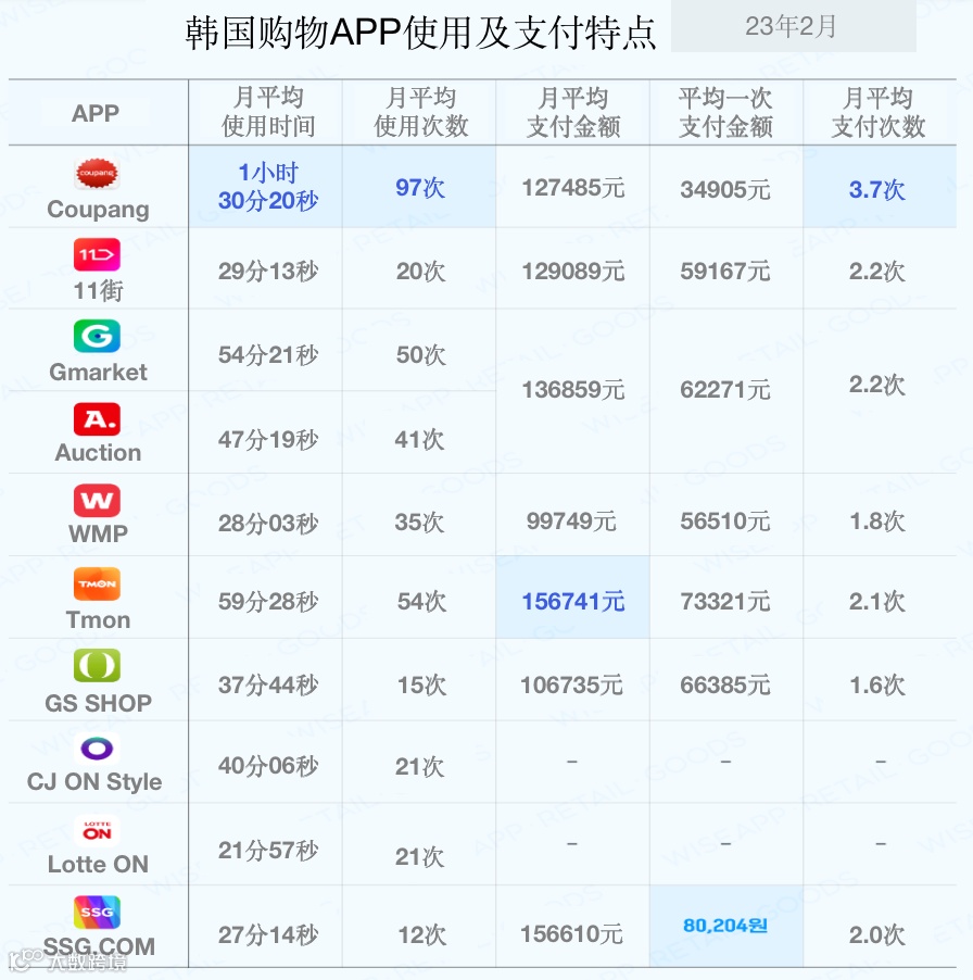 在经过各方面对比后,王总发现放眼整个韩国电商竞技场,占据较大优势的还属韩国本土电商Coupang。根据数据报告显示,在韩国最新购物APP排名报告中,Coupang以2791万用户位居第一,付费会员WOW会员数也达到1100万,也就是说每2名中就有1名是Coupang的付费会员(会员福利包括无限制免费火箭配送、30天免费退货、Wow专用折扣、以及在线视频服务Coupang Play等等)。
