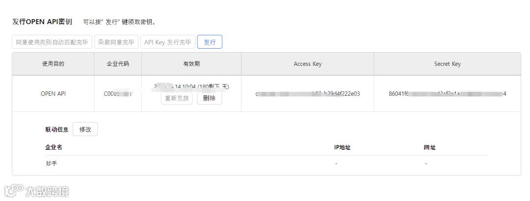 4.登录ERP平台,添加同一个API密钥