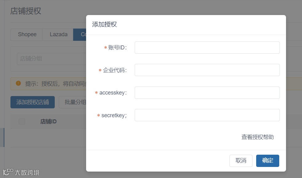 3.登录天和云仓后台,授权Coupang店铺: