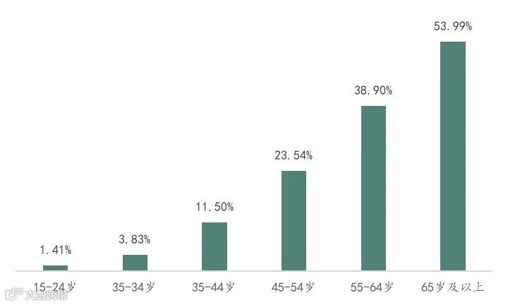④70前后的人更关注血糖、血脂、血压、癌症等慢性病知识,随着年纪增长,他们进行体检的比例会逐渐提高。比如70前定期体检的人群比例达到61%,而90后每年定期体检的人群比例只有30%。