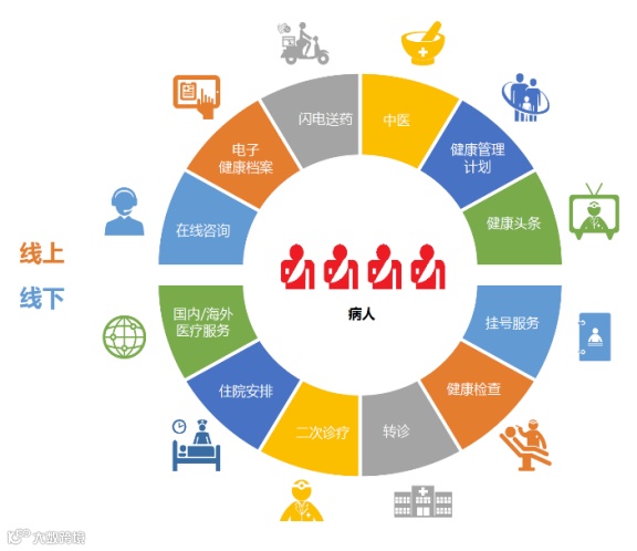 除了在线下建立新型社区化诊所,还要在线上借助互联网、手机、智能穿戴设备等工具,实现多场景的健康管理全覆盖,实时传输与沟通,通过云诊室、无人诊室、药物配送等服务满足社区居民对于购药、问诊、检测等需求,并建立起家庭甚至家族数据库。如果可以与保险结合,在支付工具上能有突破,将医疗保险产品化,将有更大的市场空间。