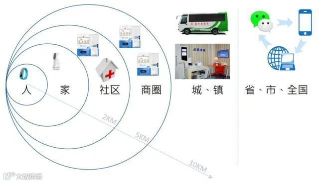 首先,可穿戴设备和智能家居设备(譬如机器人)能对个人日常健康状况实时监测,从而发挥居民健康“守门人”作用;其次,延伸到社区,自有门诊和无人微诊室相配合,满足整个社区的需要,其中无人微诊室可视作一种大型医疗设备,能提供在线问诊、开药、体检等基础医疗服务。