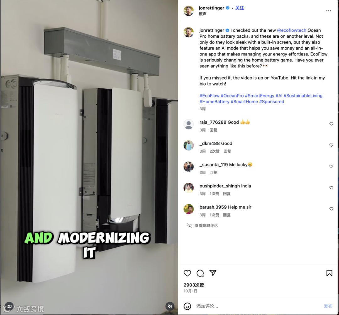 对于 EcoFlow 而言,这场合作不仅是一次品牌曝光,更是一场精准的信任营销。Jon Rettinger 的职业背景与长期积累的专业口碑,使他的推荐具有高度可信度。他的受众相信他的判断,也因此更愿意了解并尝试 EcoFlow 这类高科技家电产品。这正是 Jon Rettinger 的影响力所在——他不是在为品牌代言,而是在为观众翻译科技。而这,也恰恰是一个新兴中国品牌赢得全球消费者信任的最有效方式。
