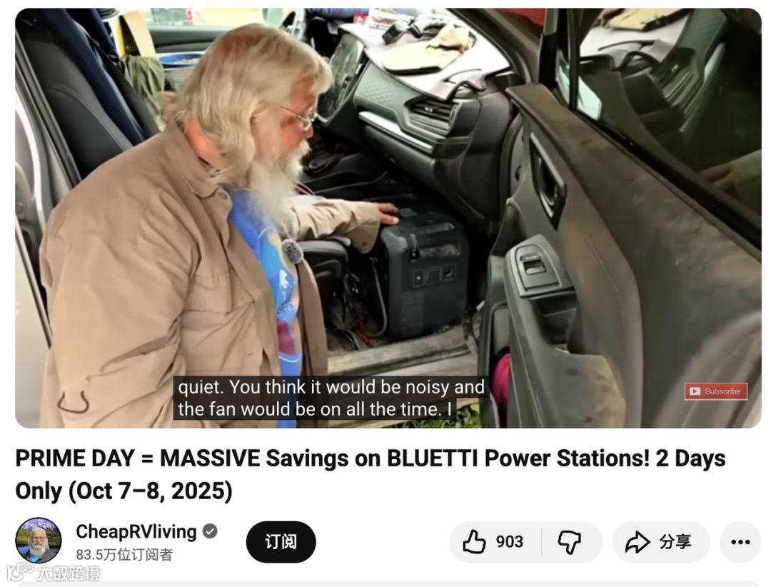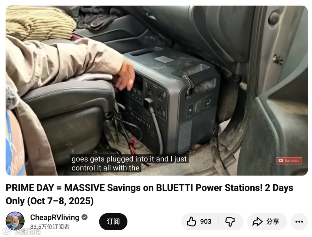 对 Bluetti 来说,这类合作的价值不在于爆量,而在于精准。CheapRVliving 的受众几乎全部是品牌目标客户:露营者、房车用户、离网生活者,他们不仅会观看,还会点击、会购买。通过 affiliate 链接与限时促销,Bluetti 不仅获得了直接销售,更在这一核心圈层建立了持久口碑。而 Bob 的教学风格也让产品信息在潜移默化中转化为生活启发,延续了品牌“为自由供能”的核心理念。