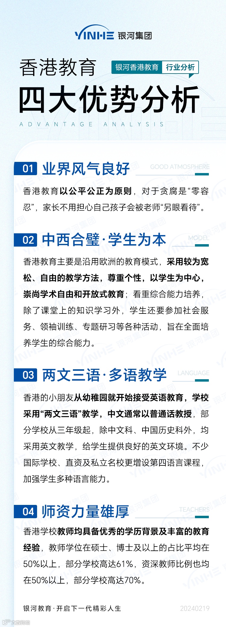 ●双语教学:香港的教育体系注重中英双语教学,学生从小就能熟练掌握两门语言,培养国际视野。