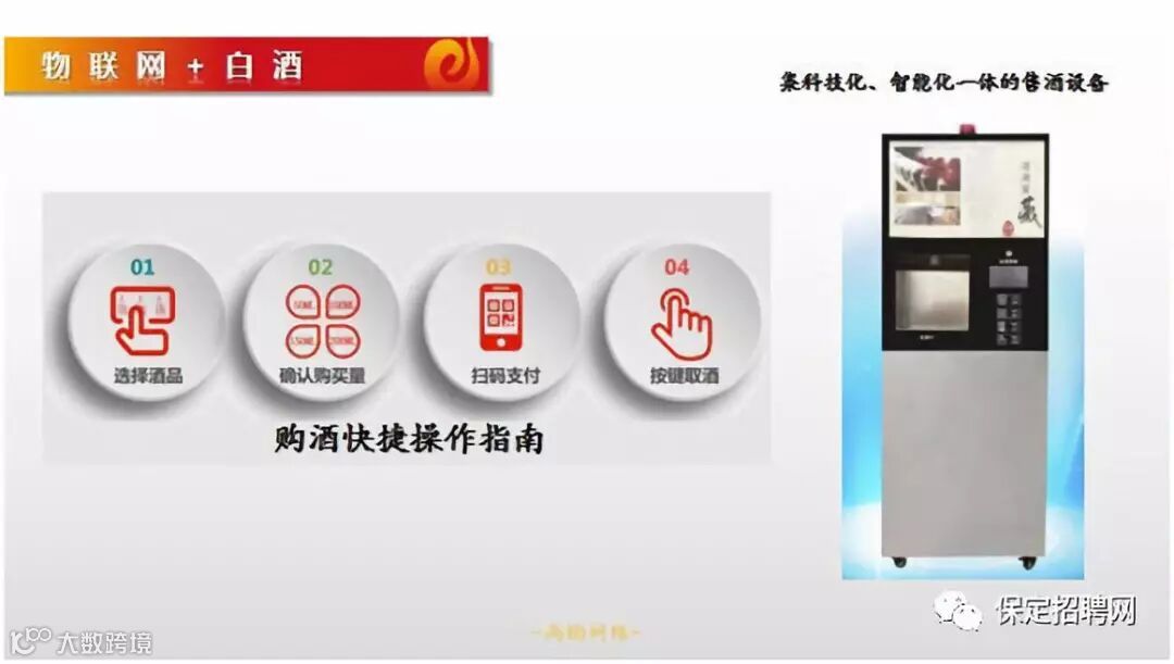 智能售酒机,是互联网升级,共享经济,新零售的又一新高地,将品牌白酒由酒厂直达消费者面前,无任何包装提倡节能环保,没有中间商赚差价,保证经营者的丰厚利润。