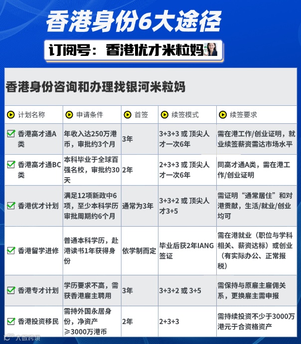 关键提醒:无论选哪条路,都要提前规划续签(比如高才通需在港就业/创业留痕,优才需证明与香港的持续关联),否则7年永居可能“断签功亏一篑”!