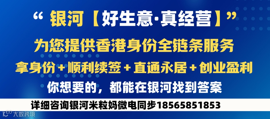 无论你是想去香港创业发展个人事业,还是想要办理香港身份和续签,都可以找银河集团,银河【好生意·真经营】为您提供香港身份全链条服务,帮您拿香港身份、顺利续签、转永居、成功创业赚钱!银河米粒妈微电同步(