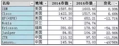 TOP4的电信设备供应商Nokia、爱立信、ZTE市值都没有超过300亿美金,这是一个怎么弱势的行业啊。