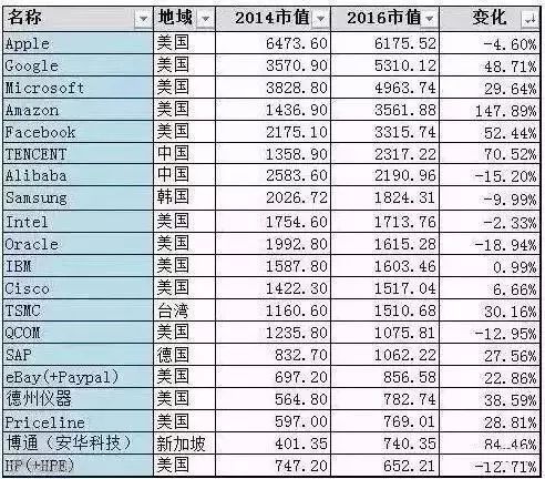 看完科技公司大排名,才知道这只是一场美国与中国的PK