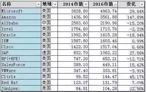 VWware受Dell并购EMC影响,市值还有所下降。未来的云计算市场,又将会是一个赢者通吃的市场。