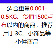 这里以标准小件为例子,超过相应的尺寸和重量,则必然会报错。