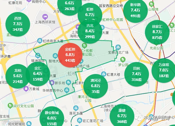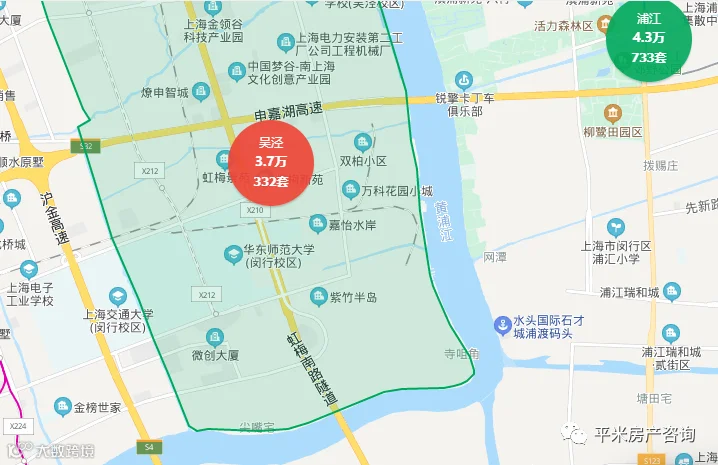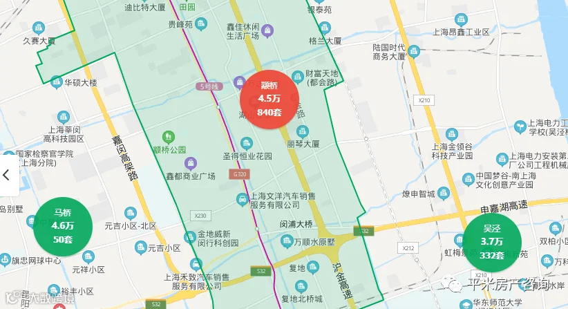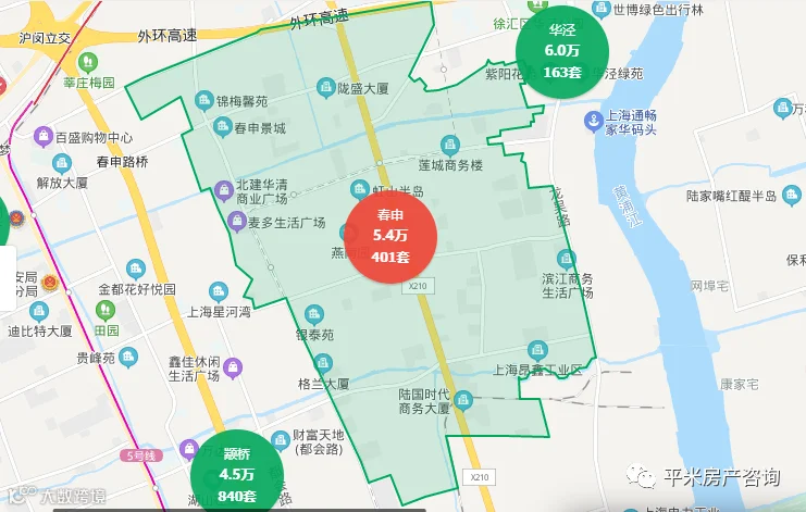 北翟路高架、沪常高速以北的区域是二产工业区,其中也有一些2010年左右的商品房和动迁房,单价在3.5-4万之间,两房总价300万,三房总价400万,是非常适合大虹桥上班人群的上车盘。