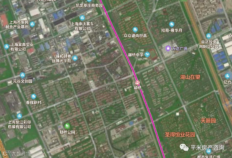 颛桥是闵行中部的大型板块,城市界面较差,5号线西侧基本都是产业园区夹杂老公房的城乡结合部,5号线东侧是别墅区和次新商品房,对比明显。