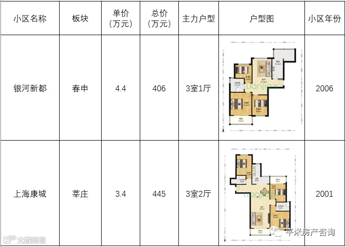 第四梯队:挂学区老公房,一房总价200-300万左右,挂牌房源较稀缺,两房300-400万左右。分布在七宝、古美、春申等板块。