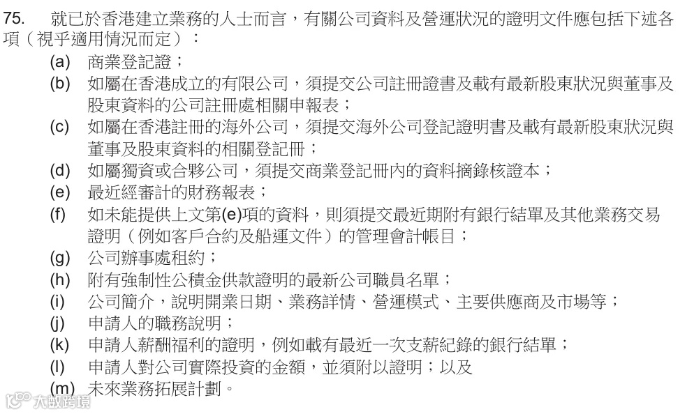 ✔基础条件:利得税、公司审计报告、有实际办公地址、稳定流水及派薪,入境处特别关注公司的实际运营活动,因此建议保留完整的业务往来邮件、发票、服务协议等证明材料。