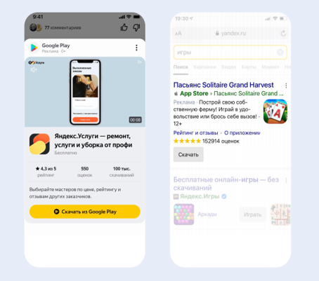 在Yandex的合作网站上展示的广告,包括横幅广告、视频广告等。