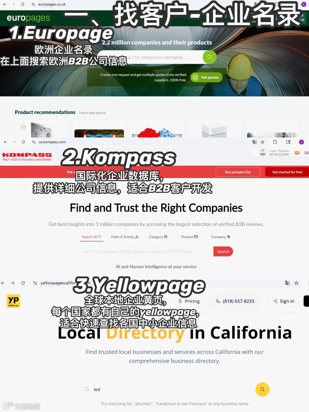 Yellowpage企业黄页、Europage欧洲企业目录、kompass B2B数据库