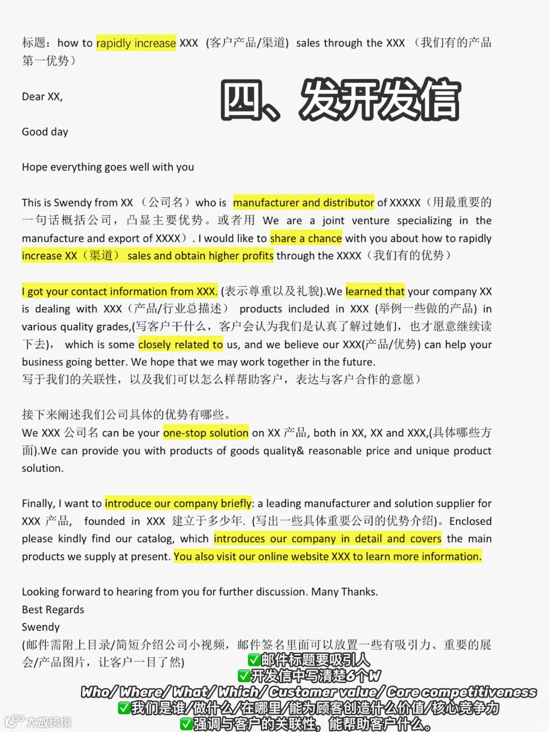 开发信中写清楚6个W