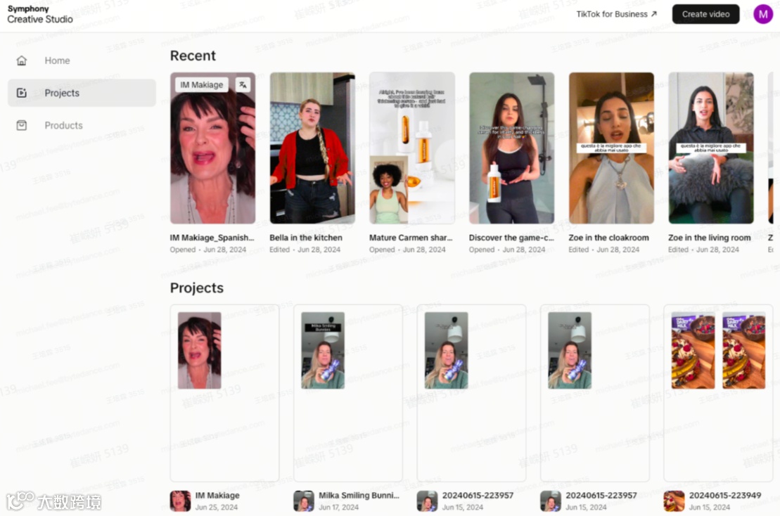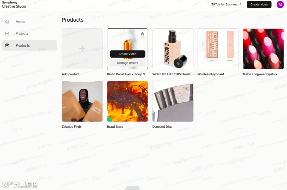 Symphony Creative Studio共有三个主菜单,分别支持新建项目、项目编辑和产品资产调整(当前仅支持英文页面,但可以生成多语言视频),接下来YinoLink易诺带你看看这三个页面的具体情况。