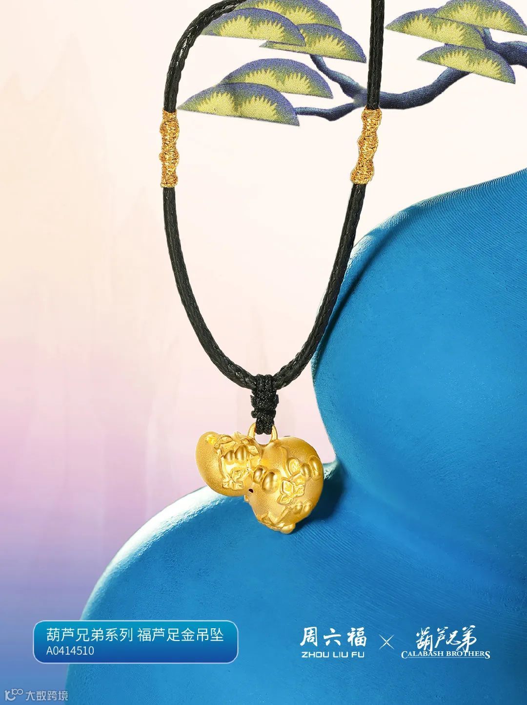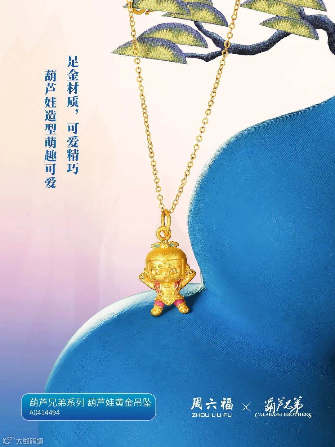 周六福新年联名经典国漫《葫芦兄弟》,推出黄金串珠系列,以“玄学祝福”为主题制作短视频内容,精准切入Z世代职场与生活痛点,实现童年情怀与当代情绪价值的双重链接[k]。微博话题阅读量超807万。设计上不仅融合吉祥纹样,更推出“蛇精”主题吊坠等隐藏款,仅限线下发售且多次售罄,展现稀缺性营销的成功。