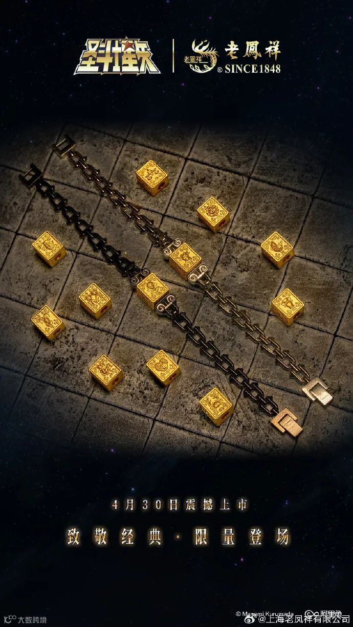 老凤祥联名经典日漫《圣斗士星矢》,推出金卡、转运珠、足金立像等限量产品,精准锁定70后、80后男性忠粉群体[k]。微博话题“老凤祥圣斗士星矢联动”阅读量超5亿,互动近12万。上市两周销售额近亿元,其中666克黄金手办售价88万元,限量30件迅速售罄,引发黄牛炒作与盗版问题,品牌不得不发布警示公告。此次合作极大拓展了“黄金谷子”的市场认知与影响力。