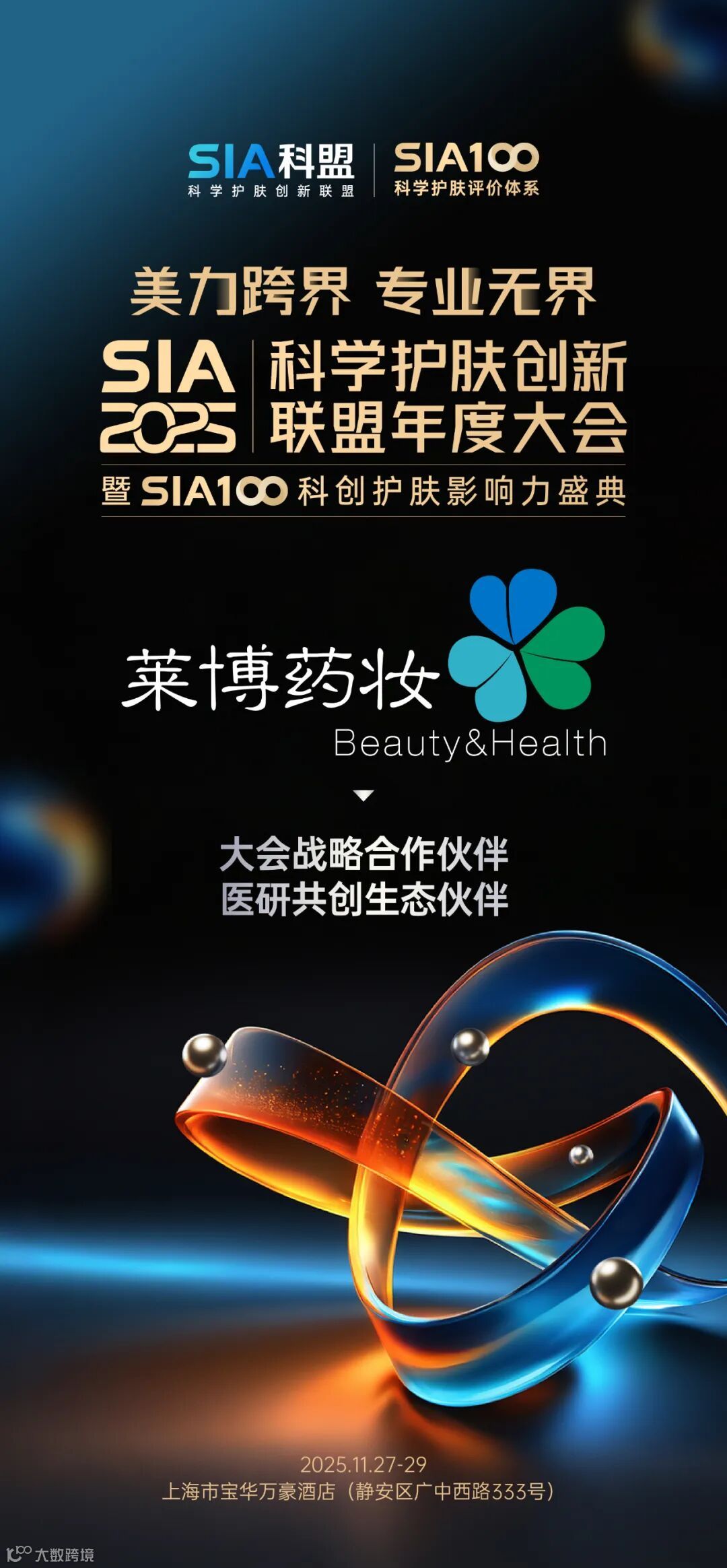 敬请期待11月27-29日,上海·静安,2025SIA科学护肤创新联盟年度大会!让我们相约莱博展位,聚焦主题演讲,关注圆桌论坛,瞩目央视网专访,共同开启一场科学护肤、医研共创的创新之旅!欢迎您私信留言公众号后台或直接联络莱博营销中心工作人员,获取莱博大会战略合作伙伴身份持有的免费报名邀请码。助您免费直通大会现场,不见不散。