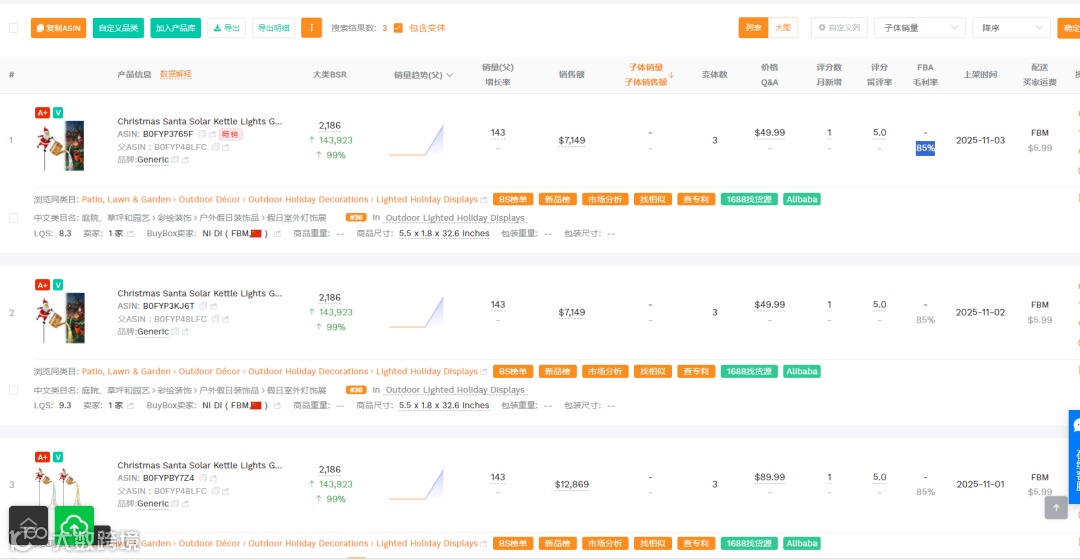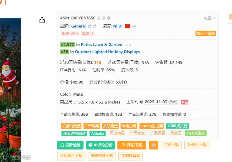 选品成功:卖家选择了一款面向圣诞等年末假日的高需求产品(户外灯饰)。