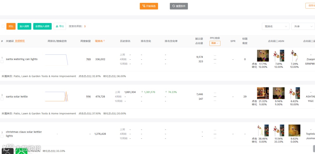 - 1,自然排名:部分词 “前 3 页无排名”,少数词有自然排名(如 “christmas solar kettle lights” 自然排名 28、18、13)。