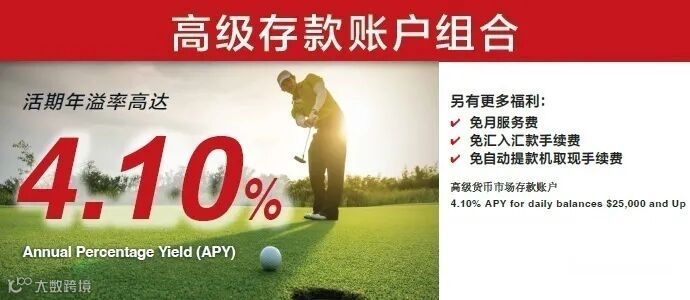 高级存款账户组合是指开立一个支票账户作为主账户,另开立并关联高级货币市场存款账户。高级货币市场存款账户最低日终余额保持在$25,000或以上可享受高利率和额外福利,包括但不限于: