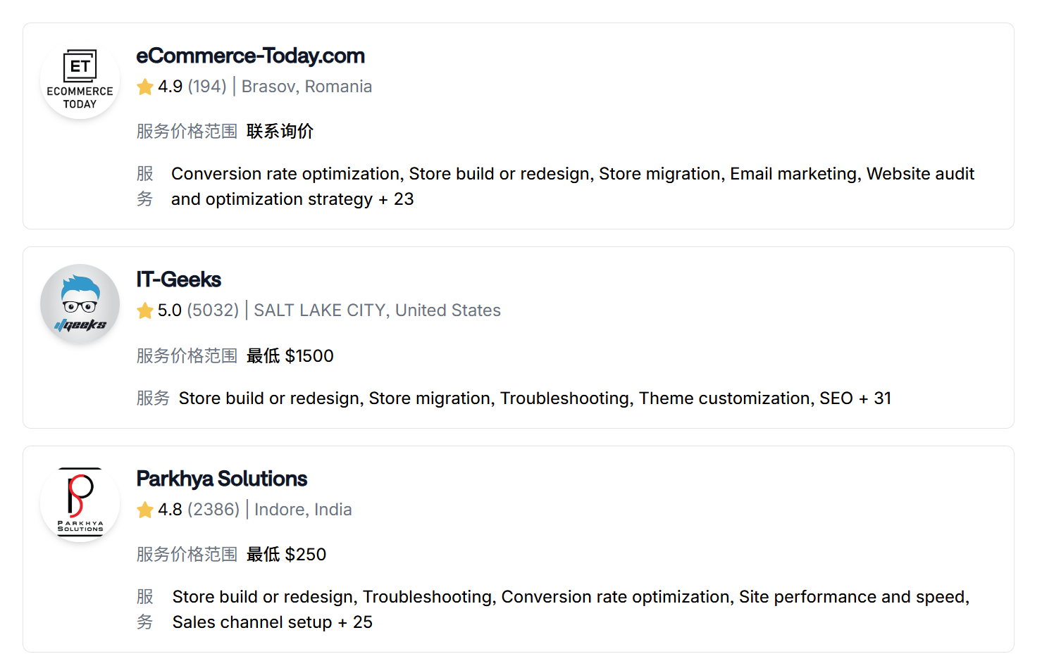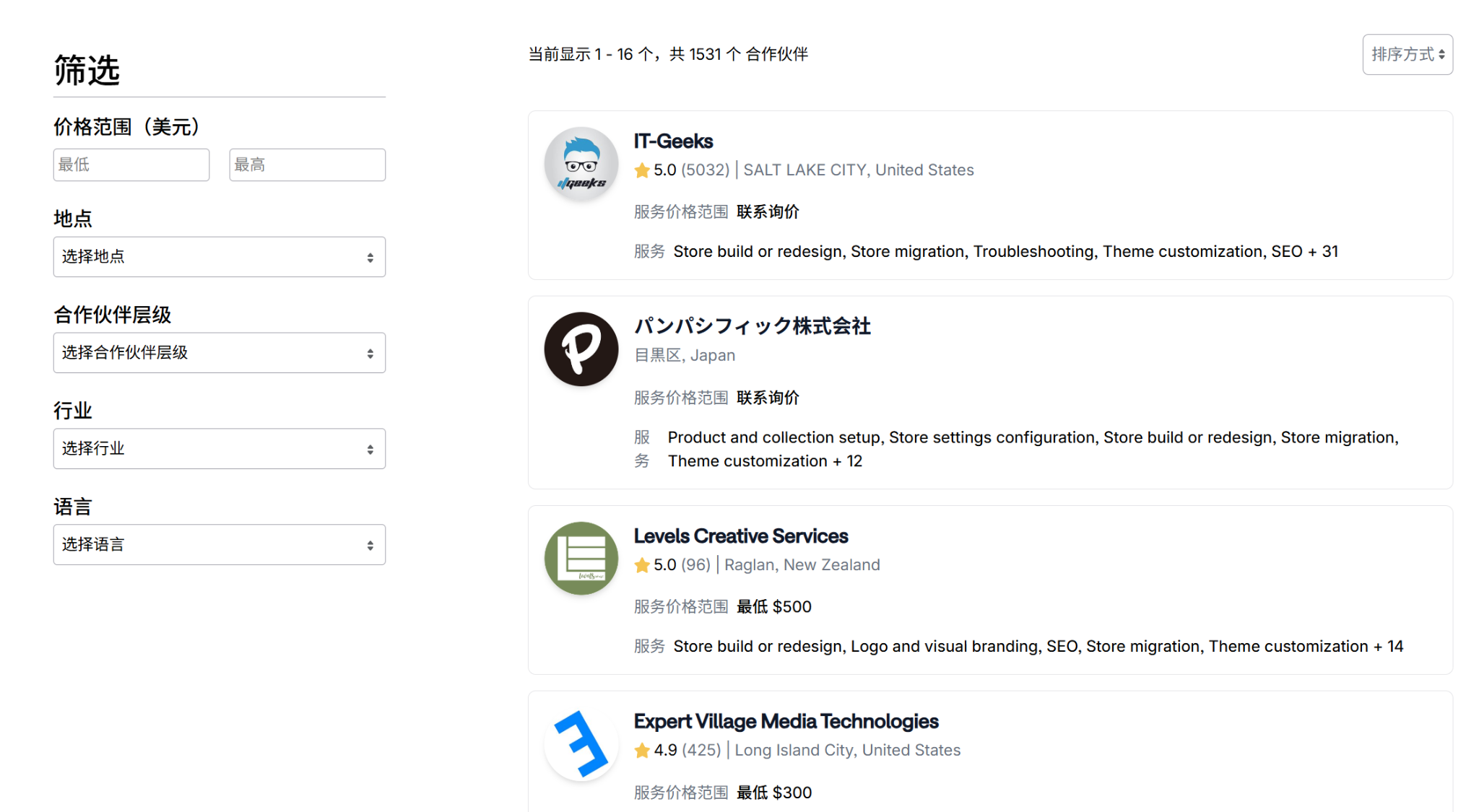 这正是Shopify合作伙伴目录存在的意义。在这里,你可以找到技能精湛的专业人士,他们可以随时与你合作,帮助你解决企业经营和使用Shopify过程中的常见难题。