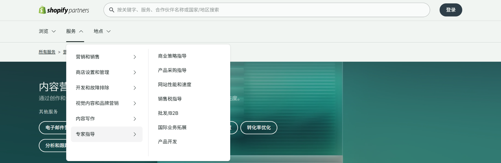 由于专家对Shopify和电商有深入了解,他们可以成为帮助企业制定业务策略的强大资源。Shopify合作伙伴目录的“专家指导”部分正是为此目的而设计:让你能够轻松找到并聘请专门从事你希望获得指导的特定领域的专家。