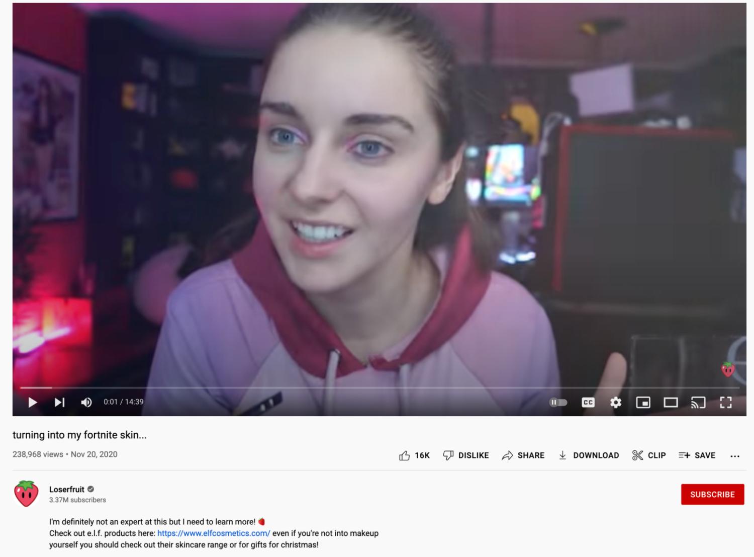 - 与网红合作:通过赞助直播,吸引流媒体现有的忠实粉丝群。例如,ELF Cosmetics赞助了一位主播,让她使用其产品,将自己变成游戏角色。