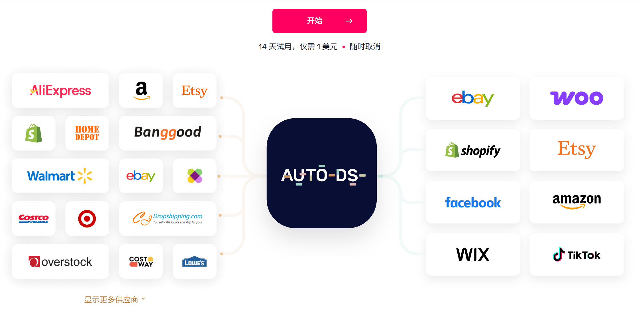 AutoDS是最全面的代发货工具之一,具有AI产品列表构建器、价格优化算法和产品研究工具,帮助识别3+个支持供应商中的趋势产品。