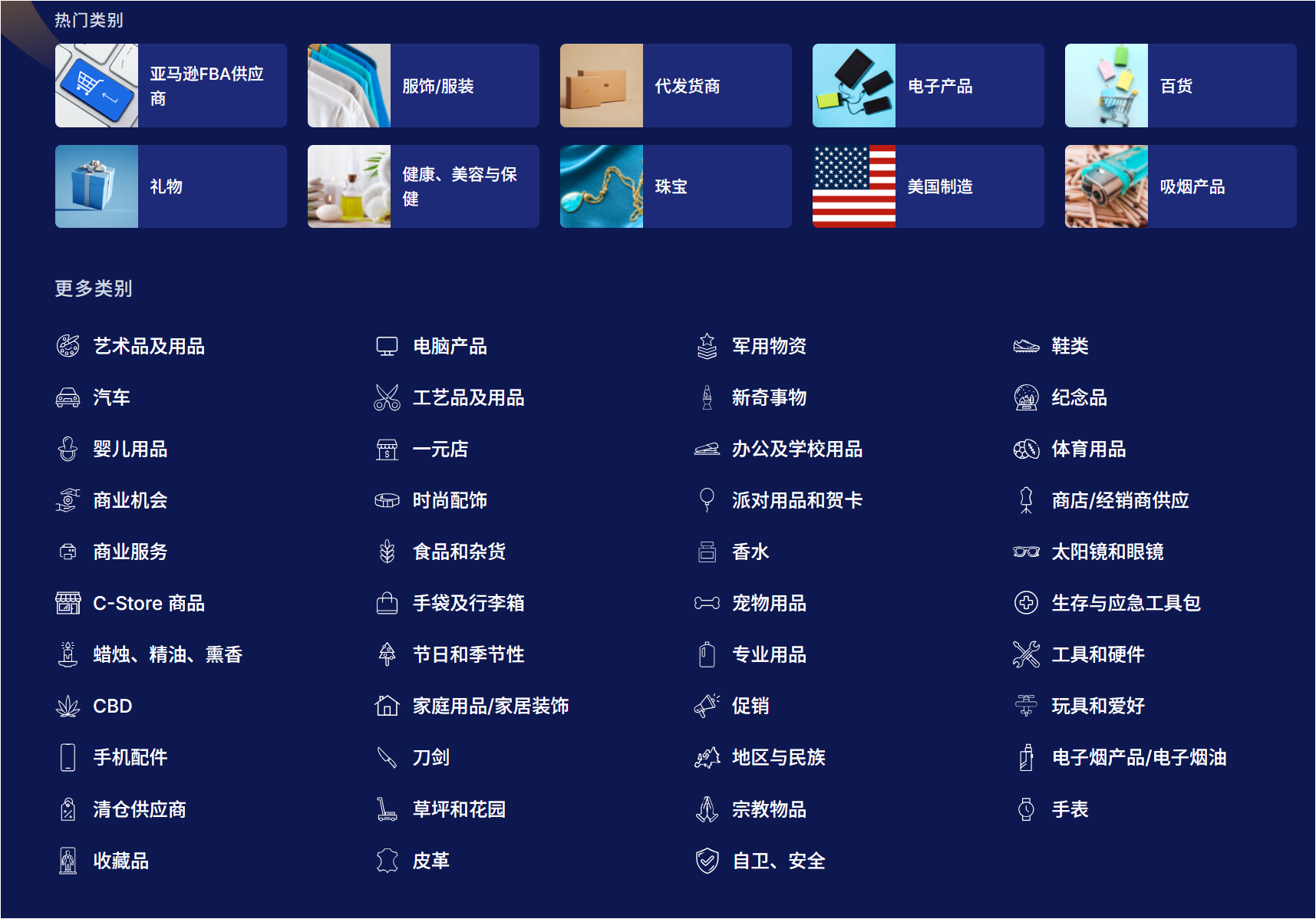 | Wholesale Central | 免费 | 供应商目录,按类别筛选 | 无 | 专注美国 | 手动 |