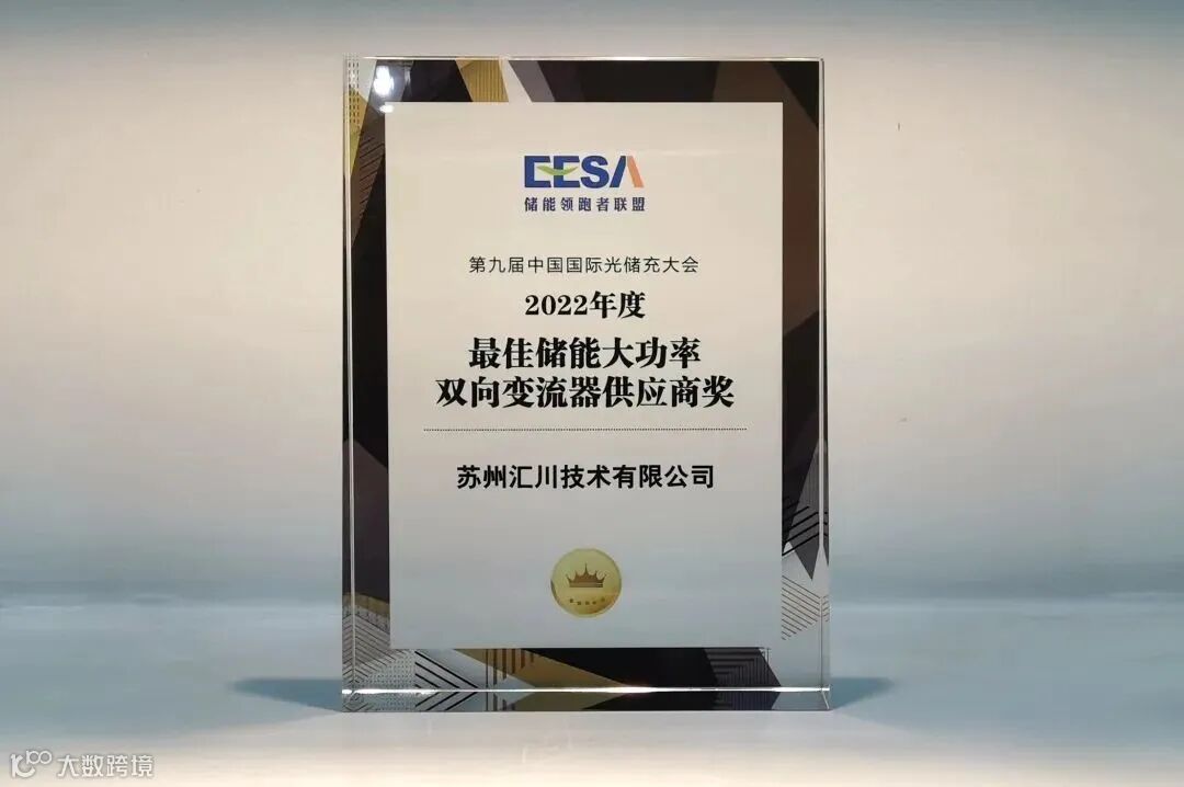 2022年11月,汇川技术在第九届中国国际光储充大会年度颁奖盛典上,荣获“2022年度最佳储能大功率双向变流器供应商”奖。同期,由中国(江苏)国际储能大会组委会与江苏省储能行业协会主办的“2022中国储能行业十佳品牌”系列奖项公益评选活动中,汇川技术在数百家企业海选中脱颖而出,成功入围“2022中国储能行业十佳PCS供应商”。