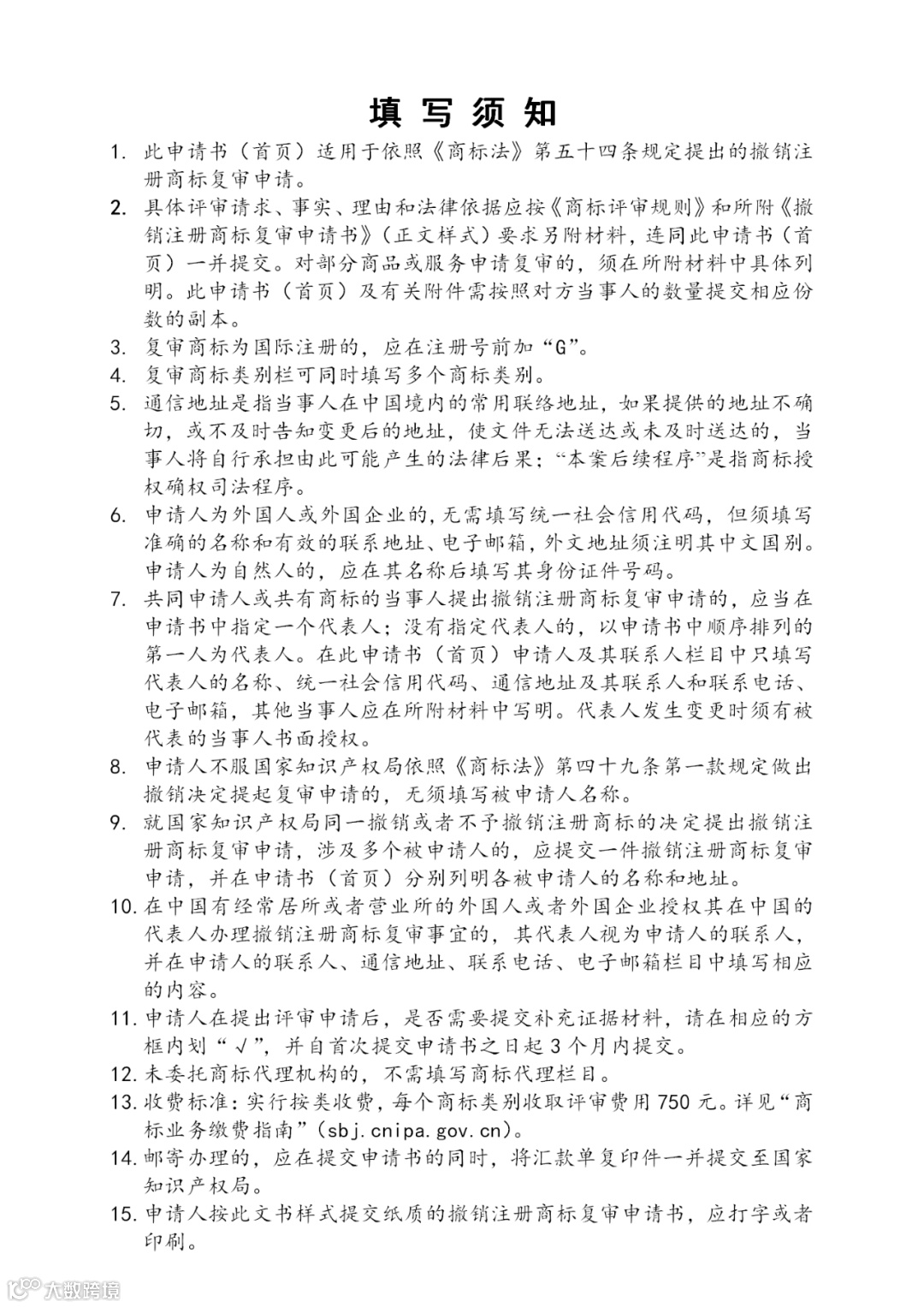国家知识产权局修改商标申请书式通信地址规定