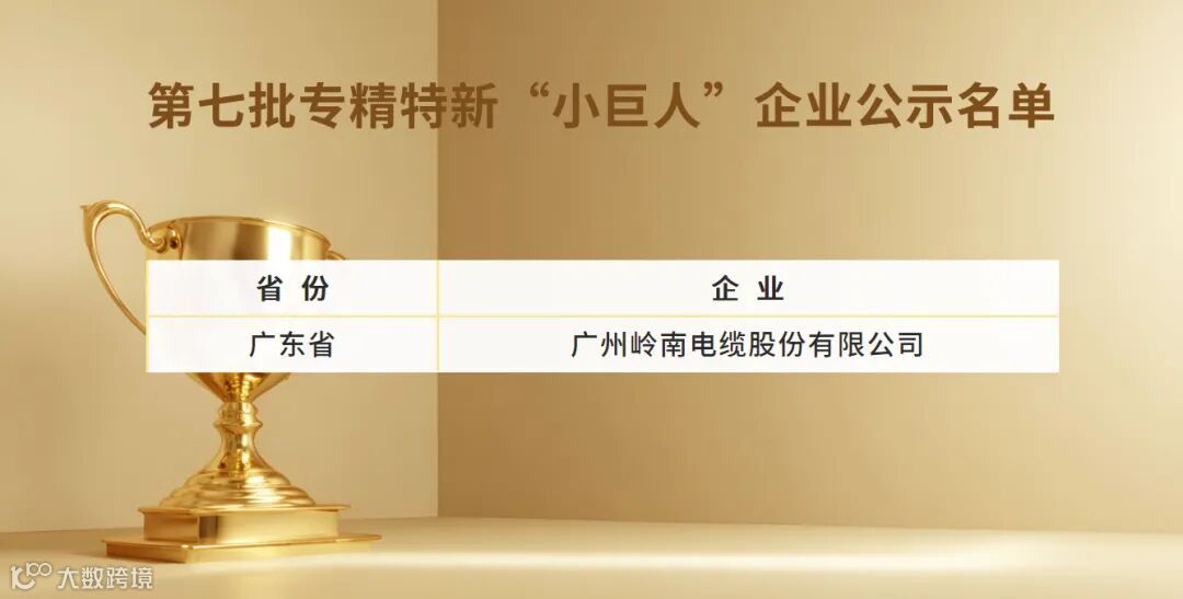 近日,工业和信息化部正式公布第七批国家专精特新“小巨人”企业名单,广州岭南电缆股份有限公司凭借在高端电力装备领域扎实的技术积累与卓越的市场表现成功入选。