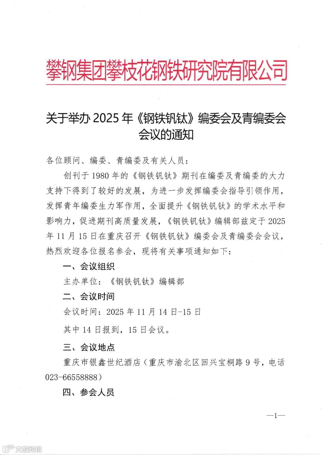 关于举办2025年《钢铁钒钛》编委会及青编委会会议的通知