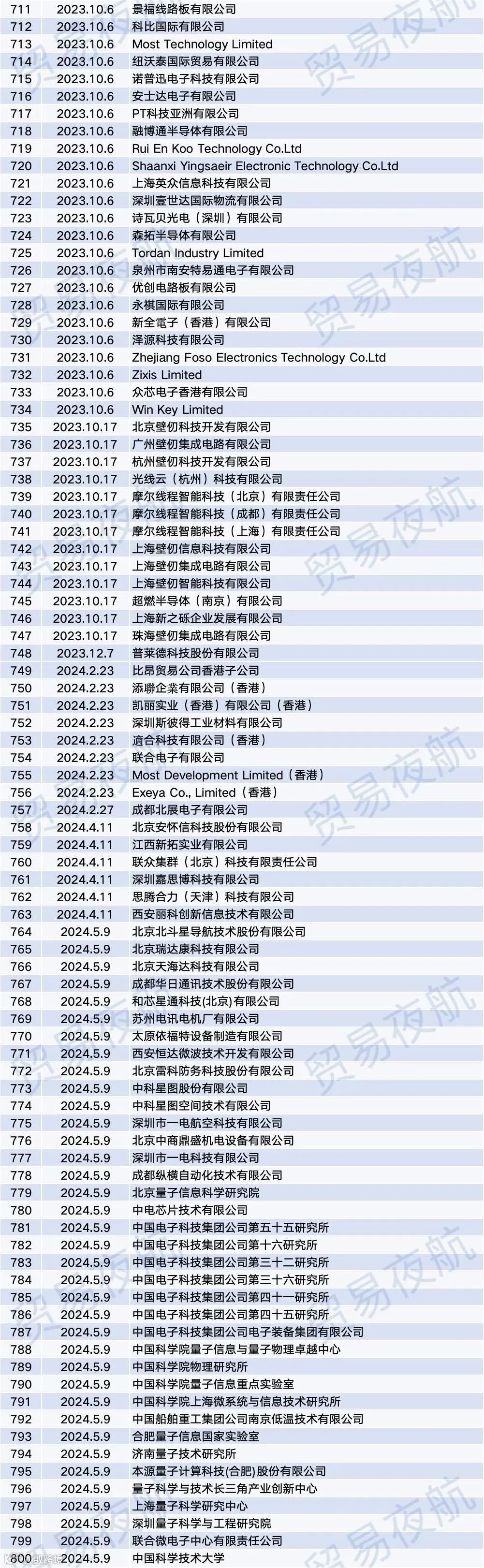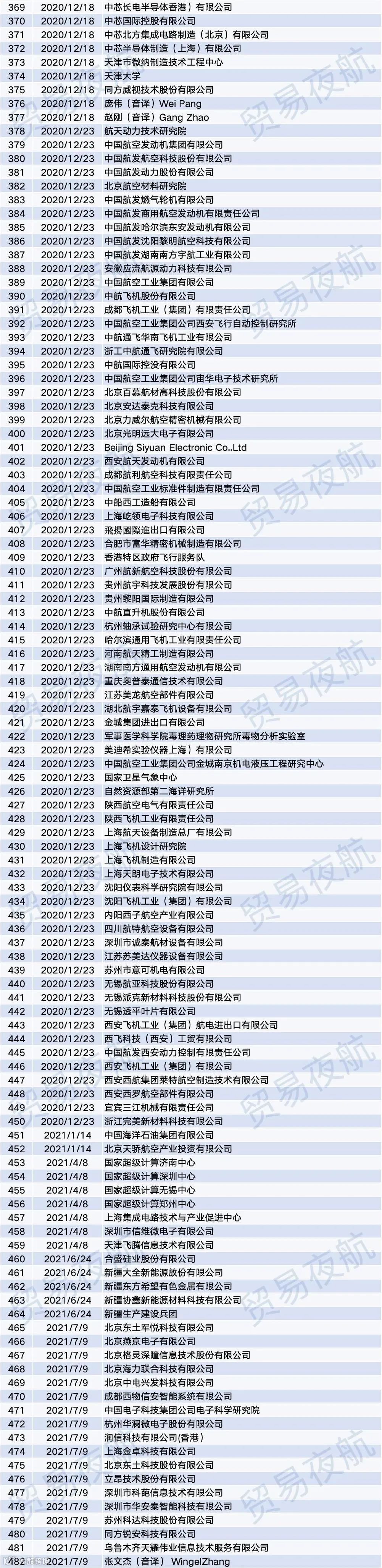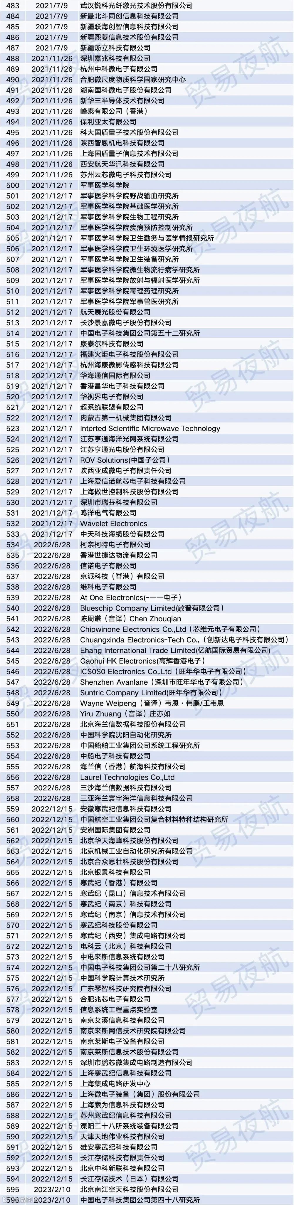 “军事最终用户”名单,由BIS制定,涵盖航空航天、量子计算、导弹技术等敏感领域企业。列入企业将受到严格的出口管制限制[k]。