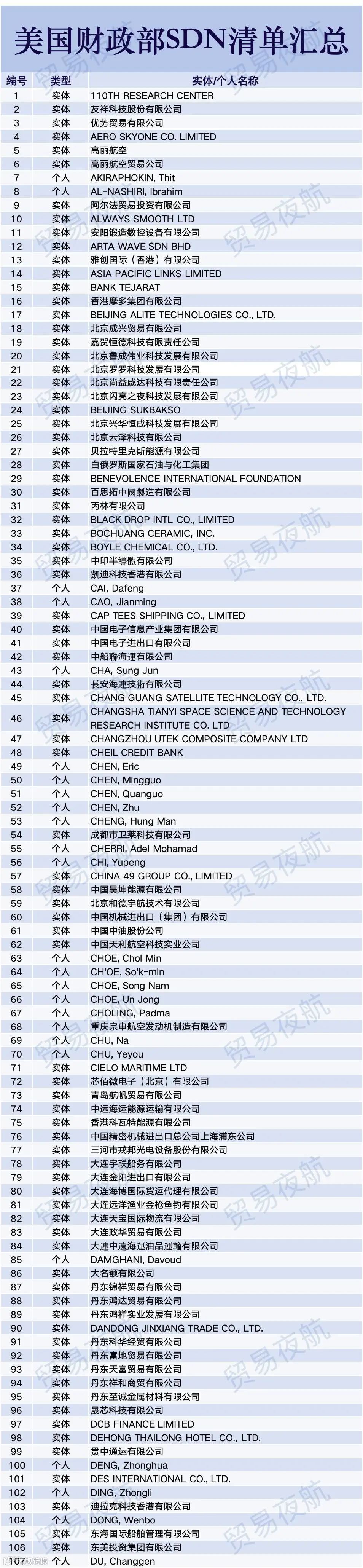 由美国财政部海外资产管理办公室(OFAC)管理,全称为“特别指定国民和被封锁人员清单”,是OFAC制裁体系中最严厉的清单。列入主体在美国境内的资产将被冻结,且禁止美国个人与实体与其进行交易[k]。