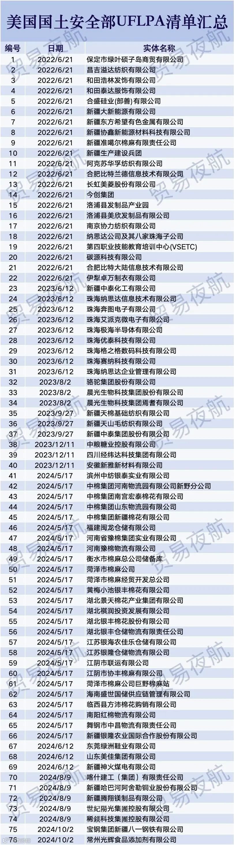 由美国海关与边境保护局(CBP)管理,主要针对与新※有关联的企业。列入企业的产品可能被禁止进口至美国,依据为《防止强迫劳动法》[k]。