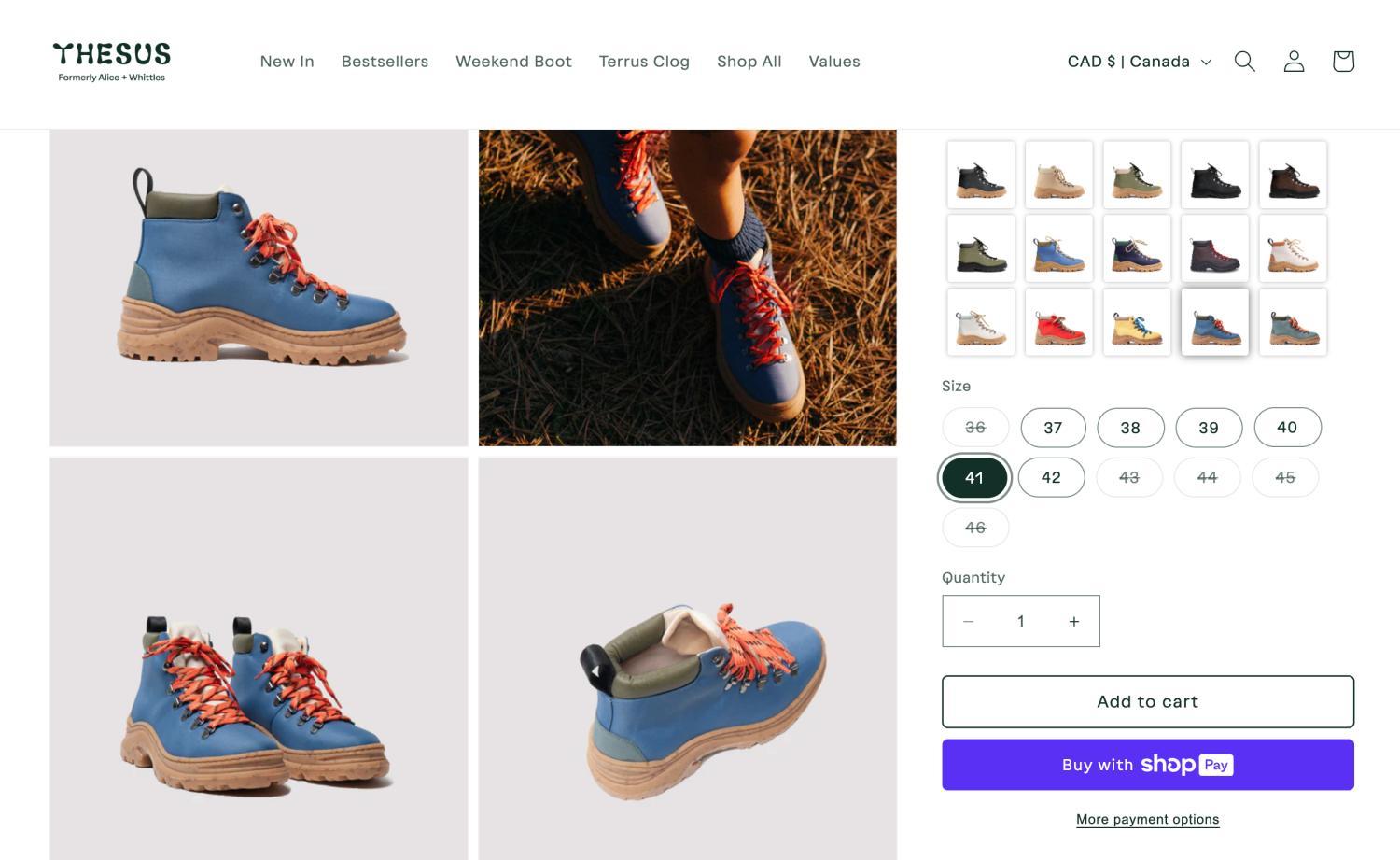 可持续品牌Thesus使用Shop Pay的一键结账功能。购物者可以通过Shop Pay快速购买商品。在结账页面上,只需点击一个按钮即可确认订单。正因为这个功能,品牌的转化率提高了35.62%。