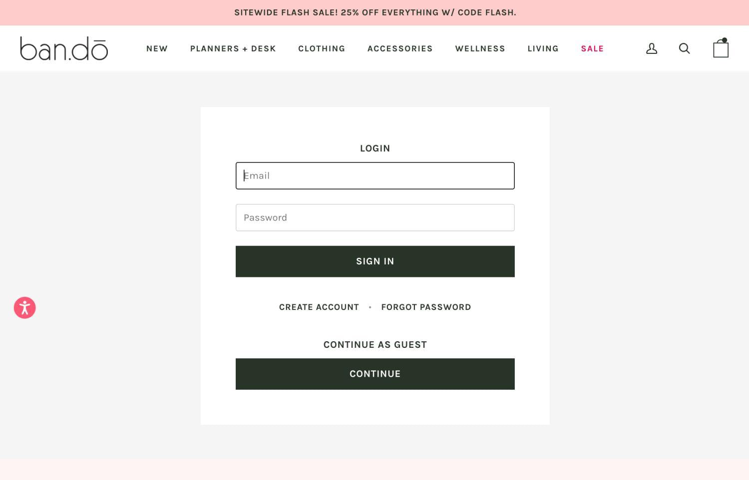 Ban.do使用Shopify Checkout,并且不强制客户在结账前创建账户。