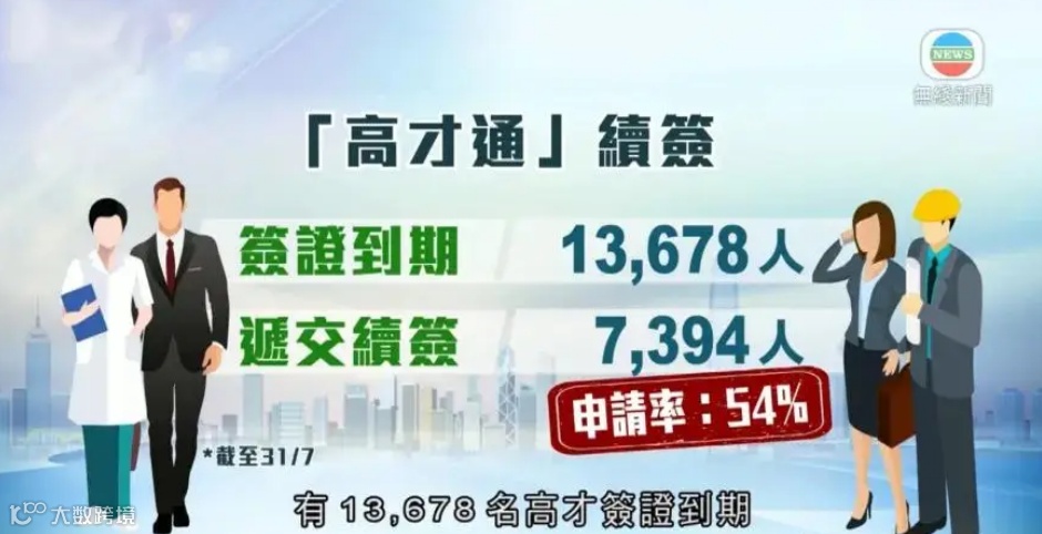 截至2025年7月31日,首批签证到期的13,678名高才通申请人中,共有7,394人提交了续签申请,续签申请率为54%,这意味着有接近一半(46%)的申请人选择不再续签,主动放弃了香港身份。