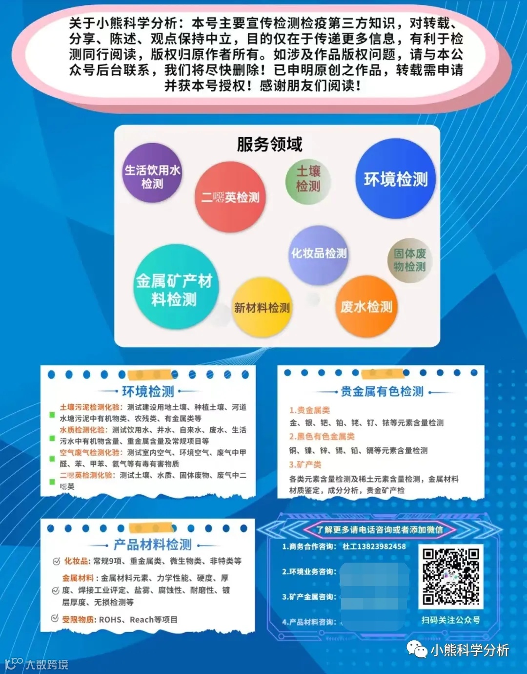 关于小熊科学分析:本号主要宣传检测化验知识,对转载、分享、陈述、观点保持中立,目的仅在于传递更多信息,有利于检测同行阅读,视频号了解检测化验领域谢谢!